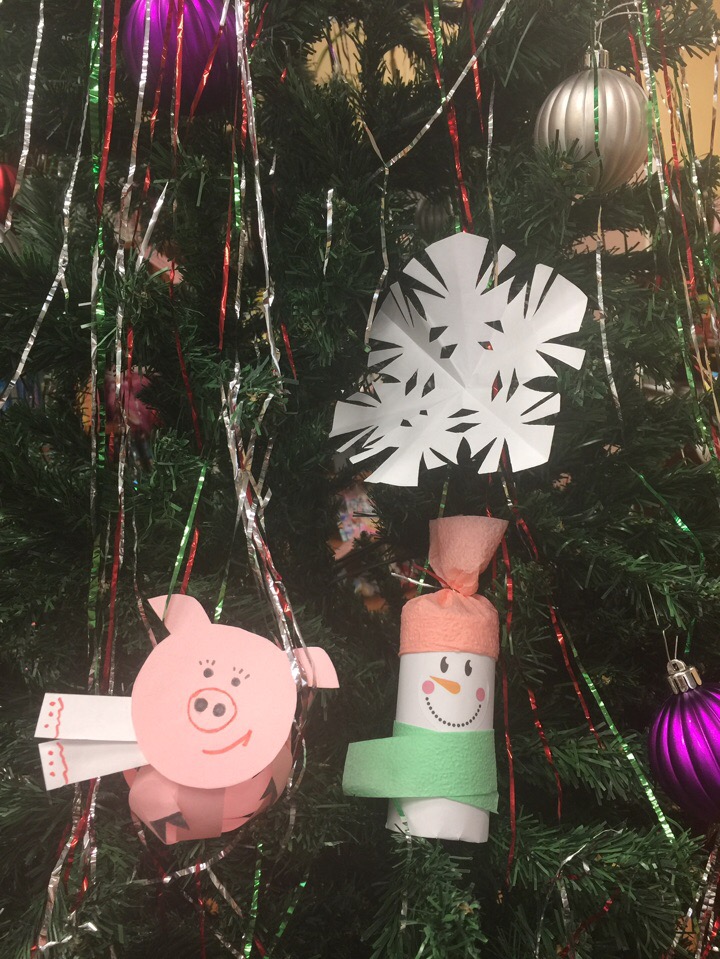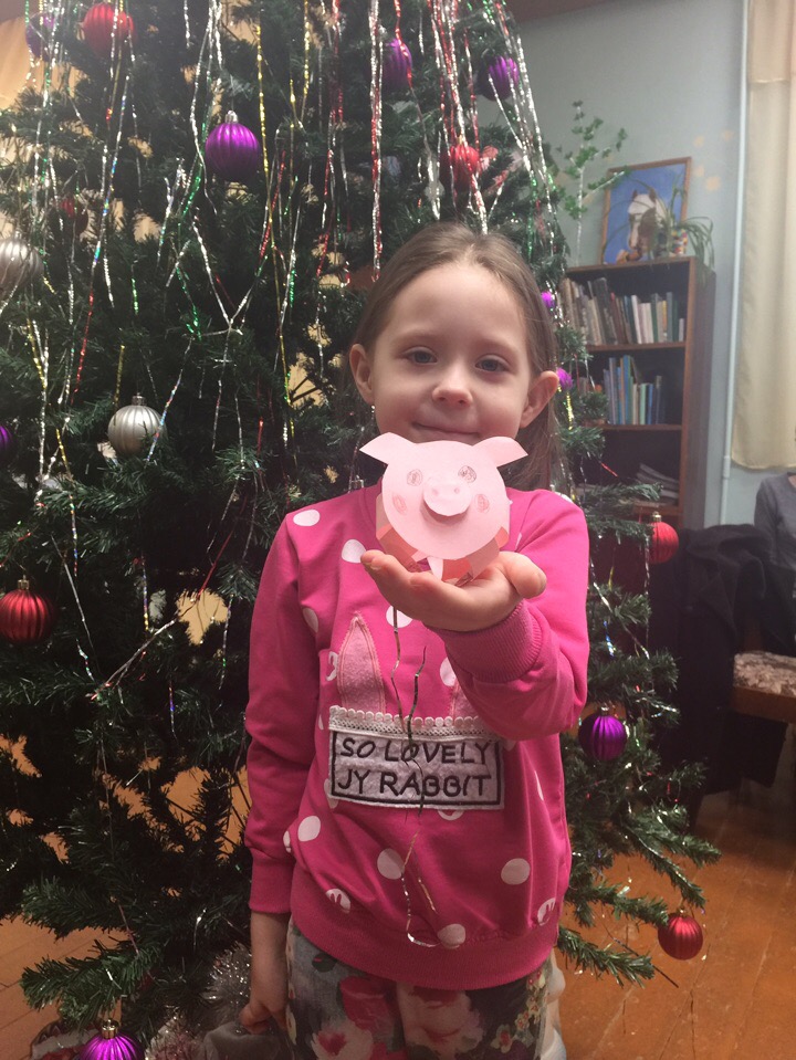 Если у кого-то из ребят что-то не получалось, на помощь приходили взрослые и библиотекари. Спустя полтора часа увлекательной работы получились симпатичные символы Нового года – объемные свинки-подвески из бумаги и снеговики из бросового материала. Своими впечатлениями участники обменивались за чашечкой чая. А кто-то тут же разыгрывал представление с хрюшками. В общем, все остались довольны, о чем написали в книге отзывов и предложений.