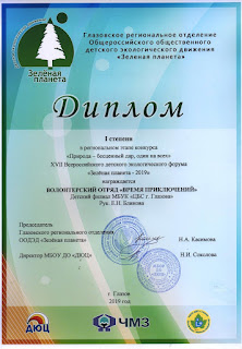 На региональном этапе этого конкурса деятельность отряда была отмечена Дипломом 1 степени. По итогам исследовательская работа была отправлена в Москву на Всероссийский этап, итоги которого будут подведены в конце года.
